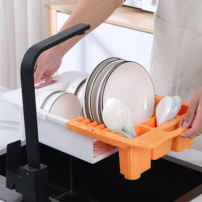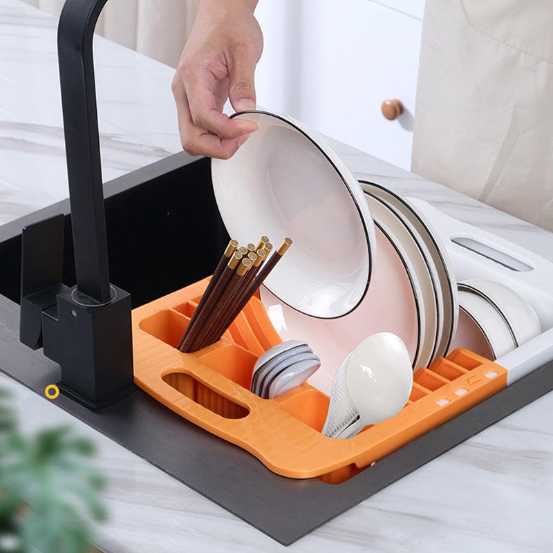 Meet the FlexiDry Extendable Dish Drainer, the ultimate solution for an organized and efficient kitchen. This multifunctional dish drainer not only offers ample space for your dishes, fruits, and vegetables, but also fits perfectly over most sinks thanks to its adjustable design.