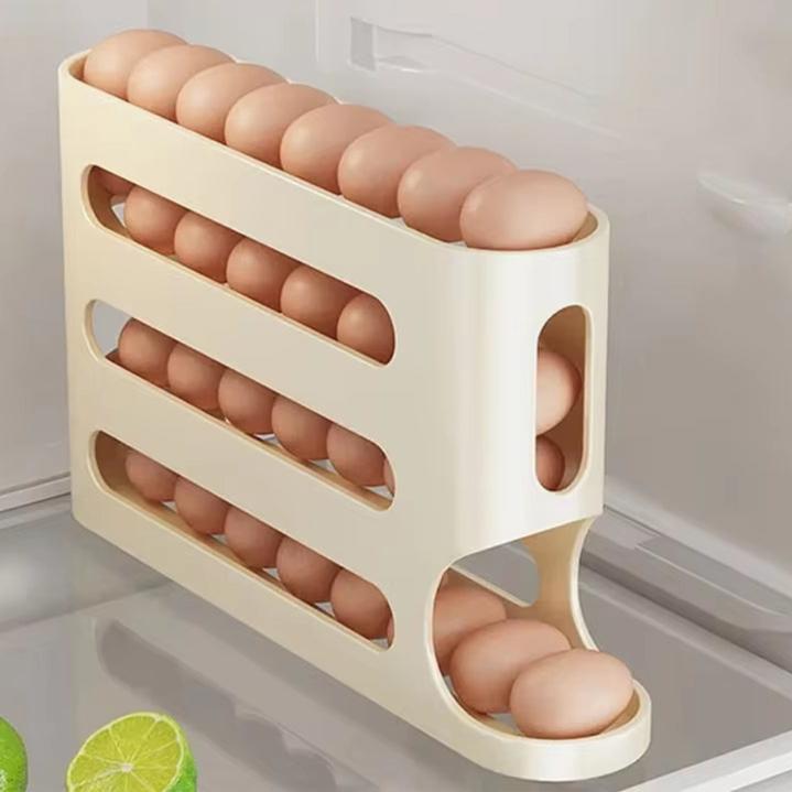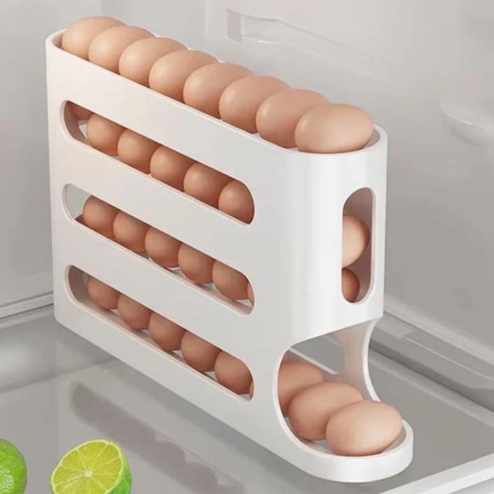 The Fridge Organizer | Sustainable Egg Tray is a smart solution for storing eggs in your refrigerator. With its 4-tier design and automatic slide function, eggs roll forward automatically, so you always use the oldest eggs first. This unbreakable and durable egg tray holds multiple eggs and helps keep your refrigerator neat and organized.