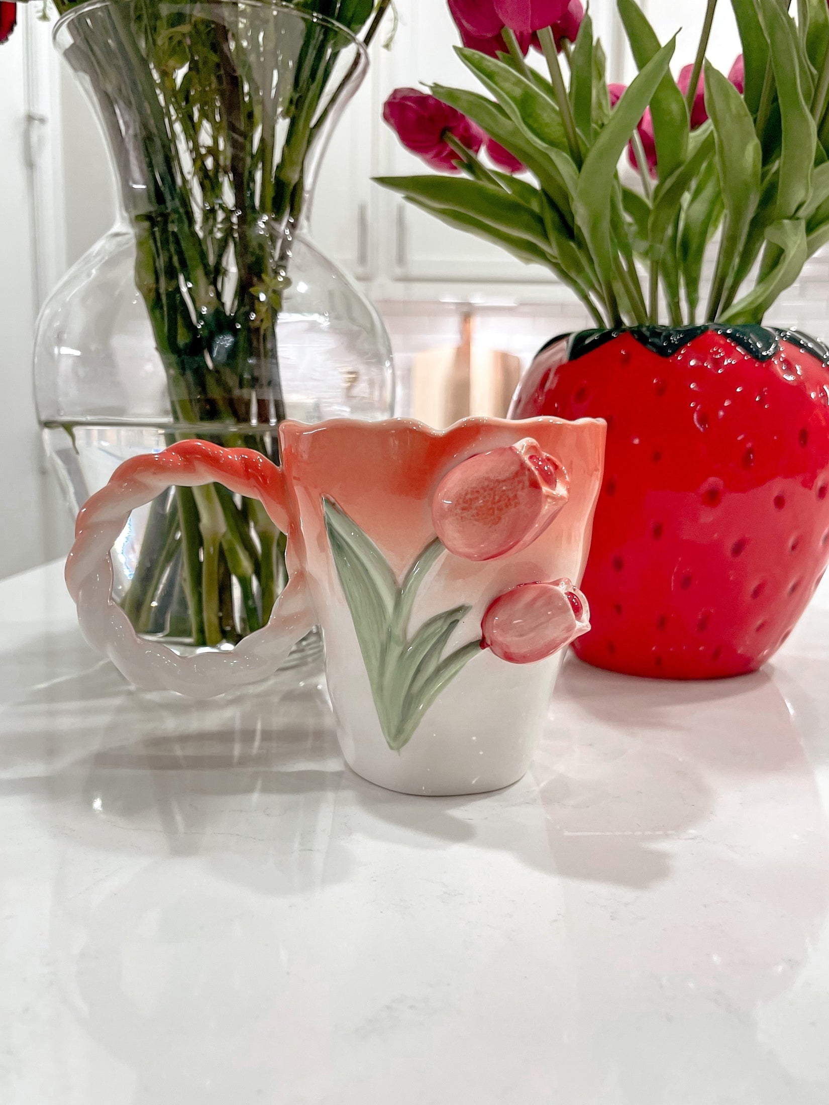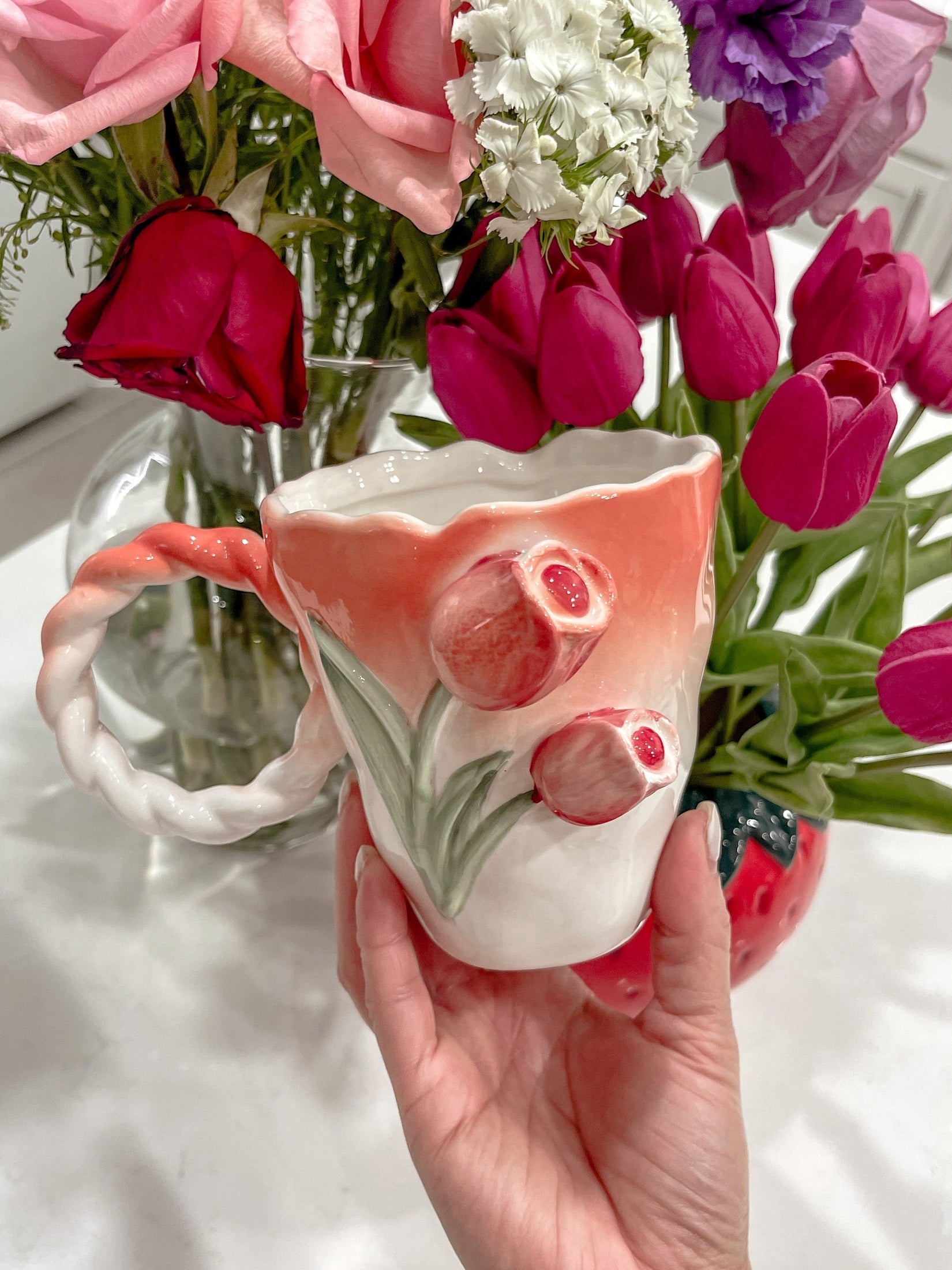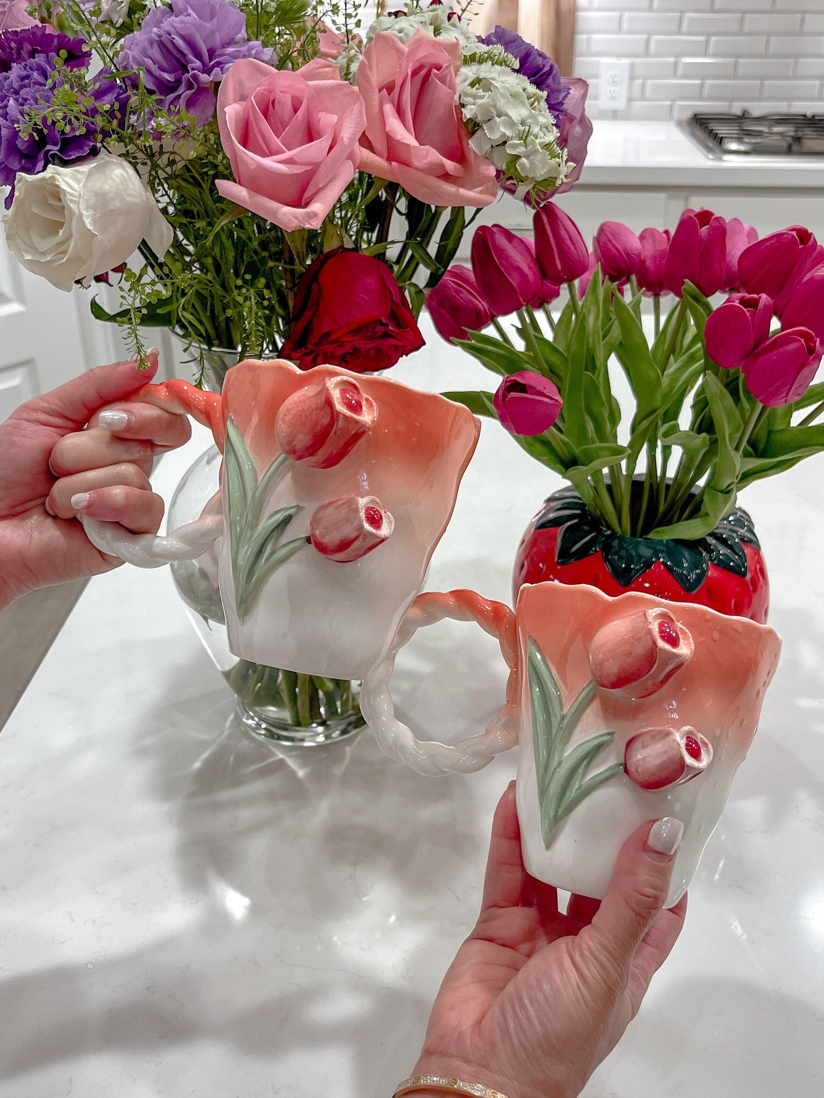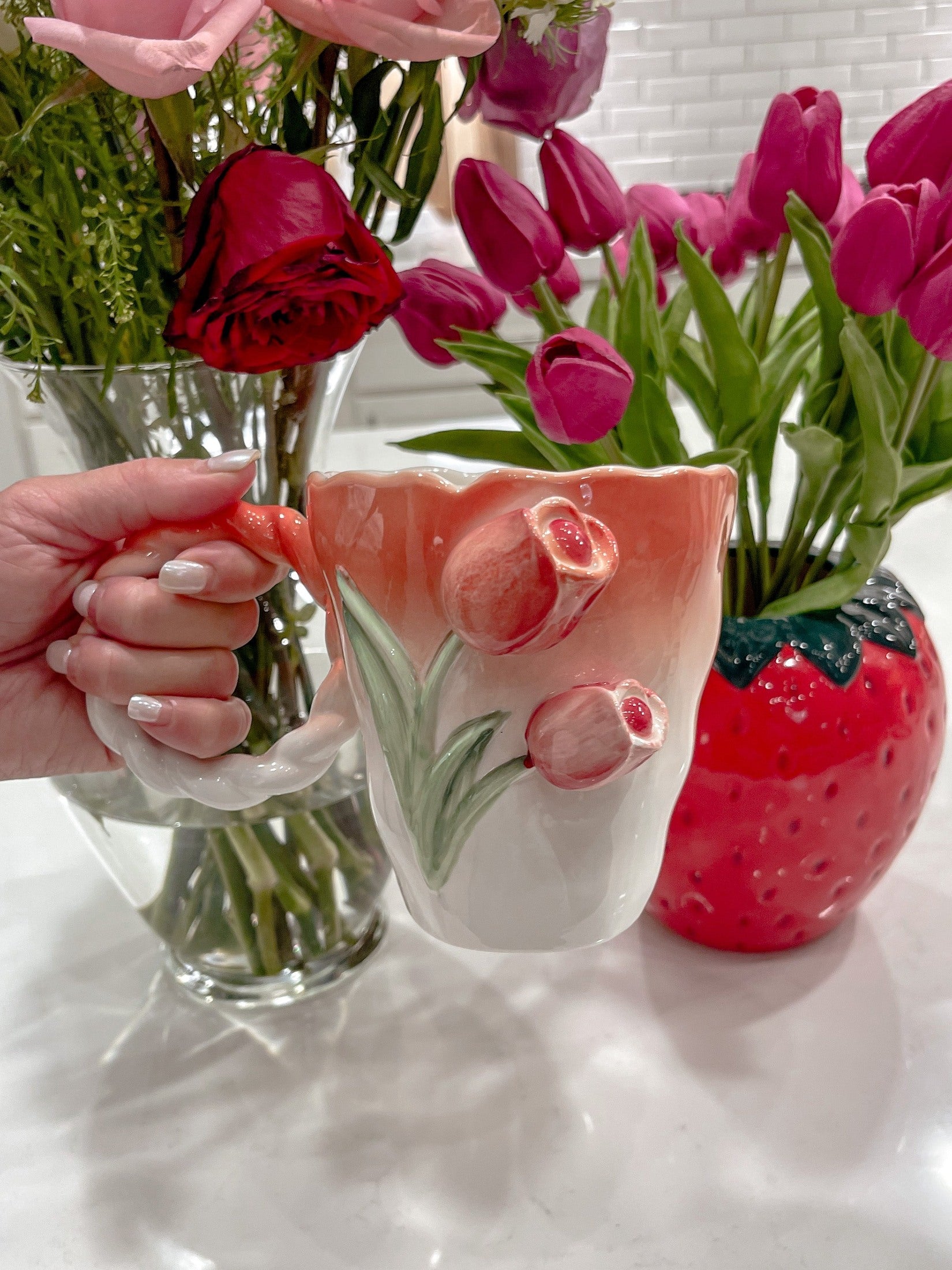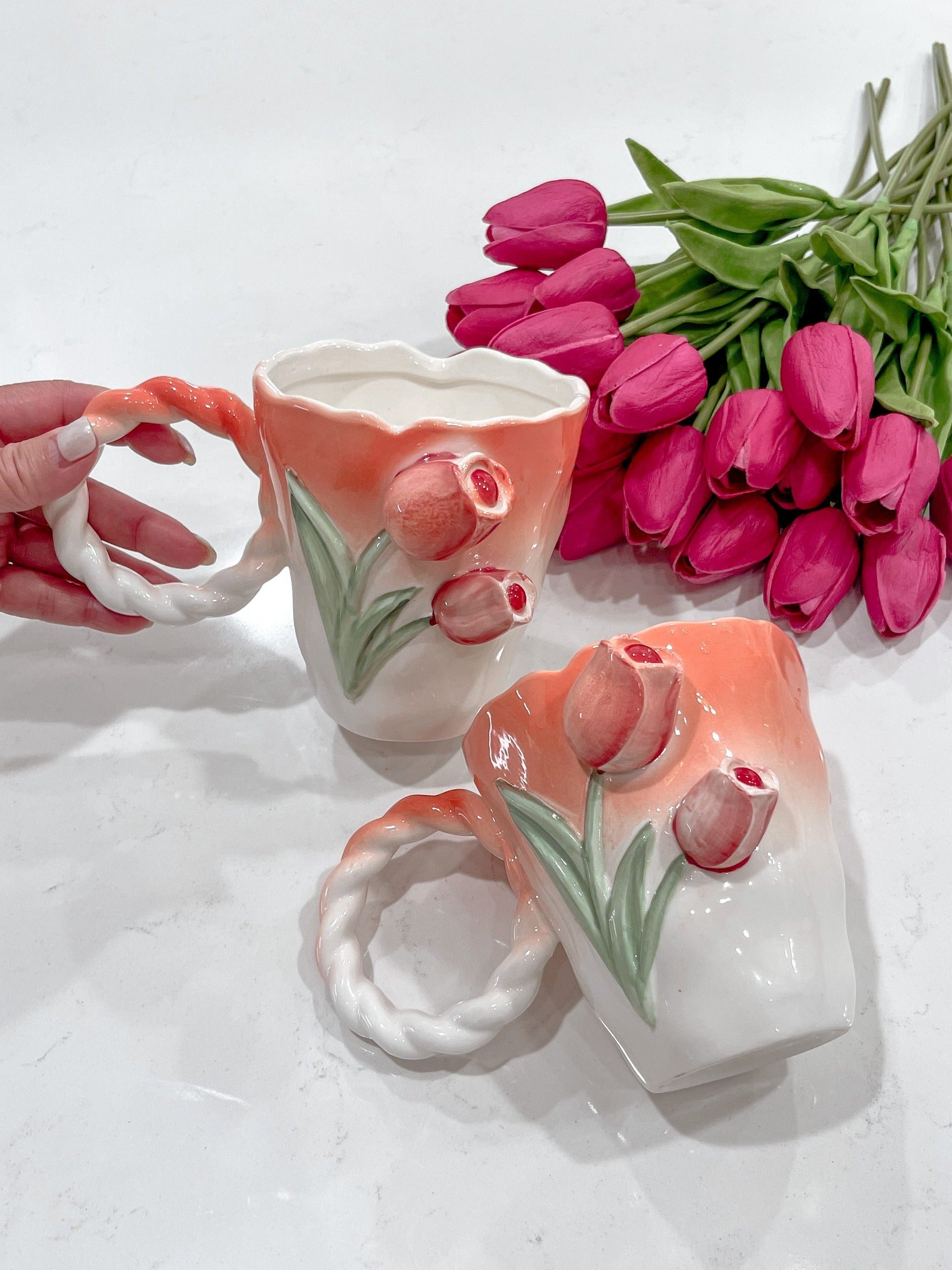 TulipBloom Mug - Handmade Ceramic with Hand-Painted Tulip Design - Comfortable & Easy to Hold
