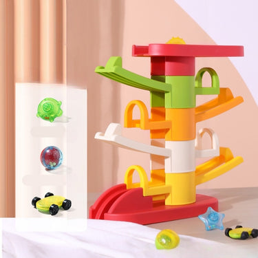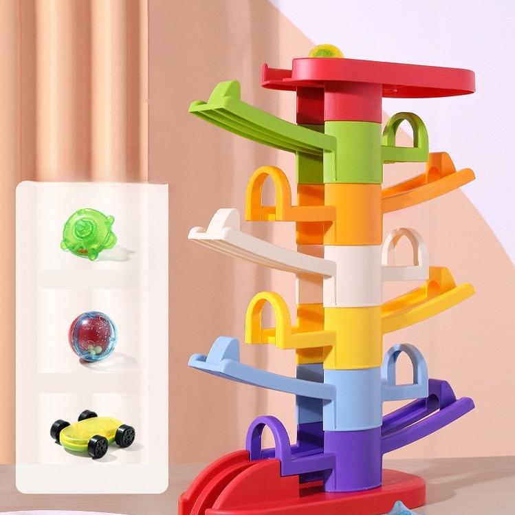 The Car Slide | Rotating Stacking Toy is a fun and educational toy for children that helps them develop their motor skills and problem-solving abilities. This Montessori-inspired slide with a rolling ball and rotating track provides endless hours of fun as children discover their creativity and imagination.