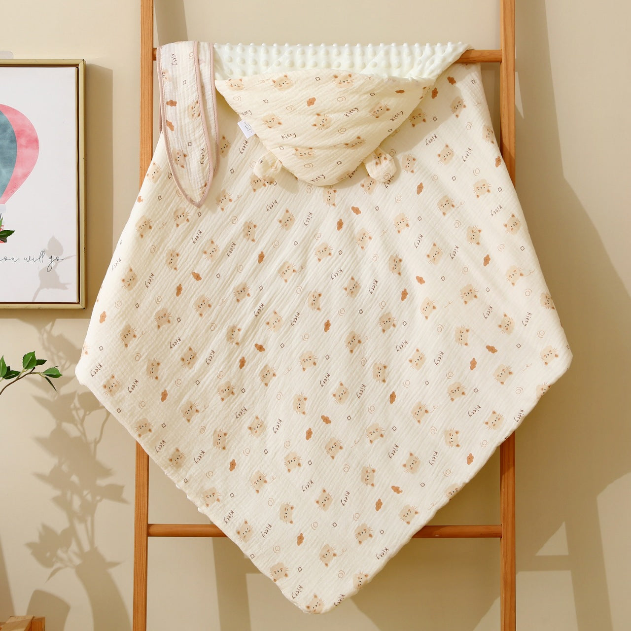 The BabyCover | Comfortable Swaddle Blanket is designed to give your newborn a warm and secure feeling. Made of 100% cotton, this swaddle blanket is perfect for a good night's sleep. Measuring 90x90 cm and with convenient ties, it's ideal for babies aged 0-1 year.
