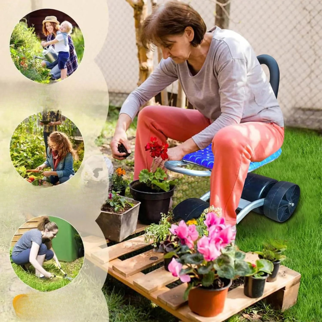 The GardenEase 360° swivel garden chair is designed to enhance your gardening experience by offering adjustable height and maximum mobility. Its ergonomic design relieves back and knee pain, allowing you to enjoy your gardening without discomfort.