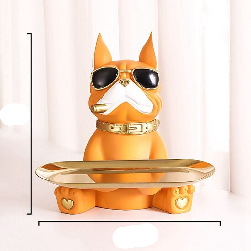 Bring a unique and cheerful atmosphere to your interior with this decorative bulldog ornament. This quirky bulldog, stylishly dressed and holding a tray in its paw, beautifully combines humor, rarity, and color. A perfect eye-catcher that adds character and warmth to any room.