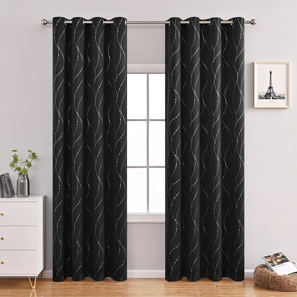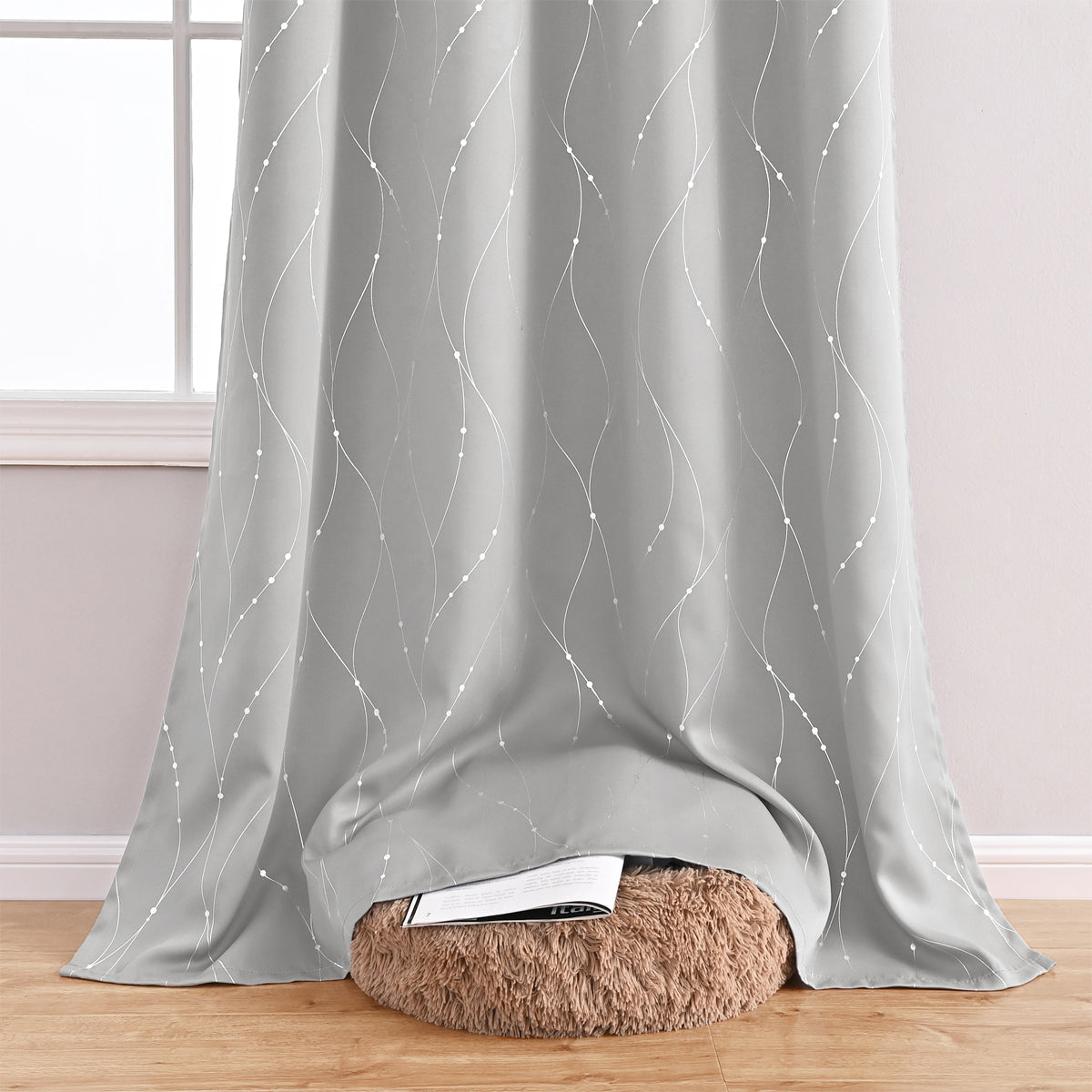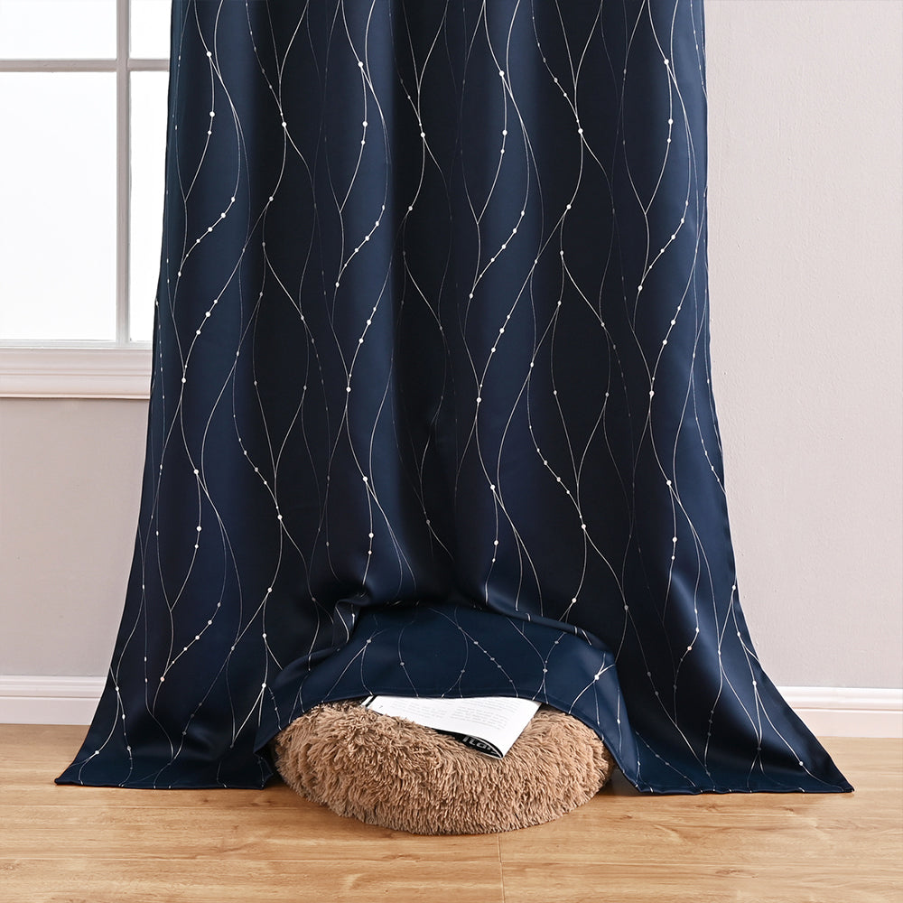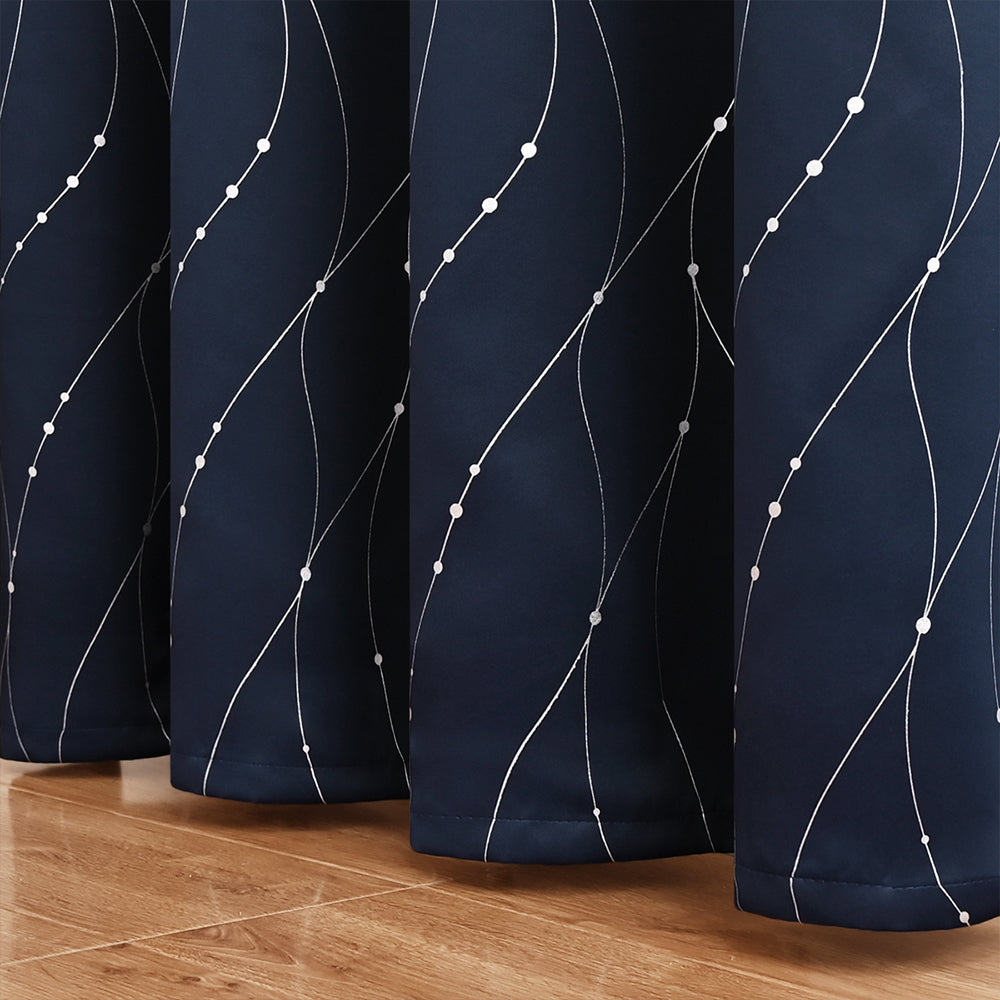 Combine style and functionality with the DarkRipple Blackout Curtain . This beautiful curtain, designed with subtle dot and wave patterns, offers a modern solution for darkening your room and insulating heat. Perfect for a peaceful sleep environment or adding a chic, minimalist touch to your interior.