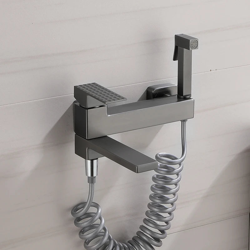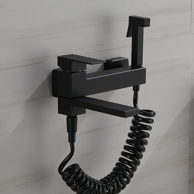 The EleganceLuxFlow shower mixer in brushed gold combines refinement and functionality in a single sleek design. Its modern design, including wall mounting and matte black finish, adds a luxurious touch to your bathroom. With its integrated hand shower and bidet set, this mixer is versatile and offers an elegant solution for everyday use. Easy to operate, it's ideal for a comfortable and stylish bathroom experience.