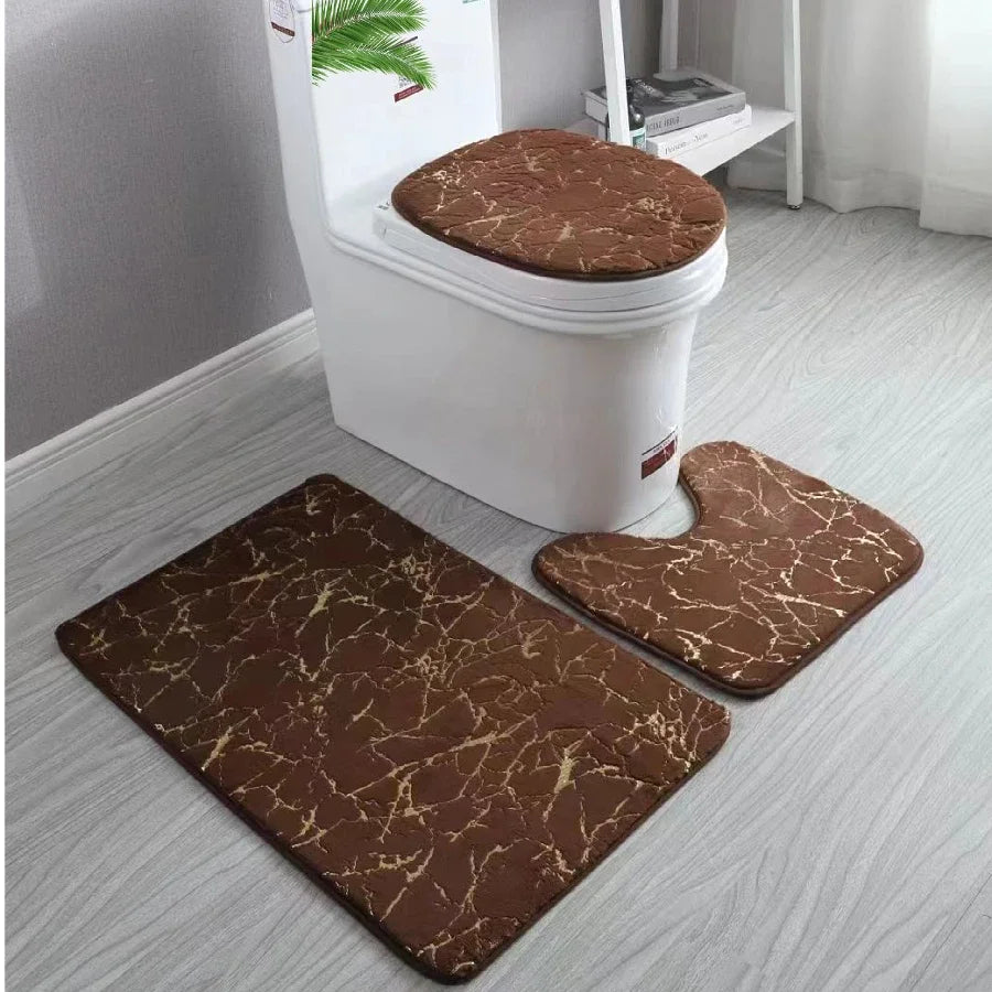 Enhance Your Bathroom with a Stylish Gold Print Toilet Mat Set