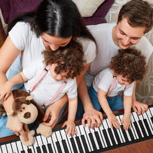 The MelodyFlex Roll-Up Piano offers ultimate freedom with its 49 keys and built-in stereo speakers, allowing you to play anywhere and enjoy clear sound. Its flexible design allows you to roll it up and take it with you, making it the perfect companion for music lovers on the go. Whether you're a beginner or have experience, the piano offers a variety of sound effects and features to enhance your music. Its lightweight and portable design makes it easy to store and transport. The built-in speakers deliver beautiful sound, allowing you to play anywhere without needing any additional equipment.