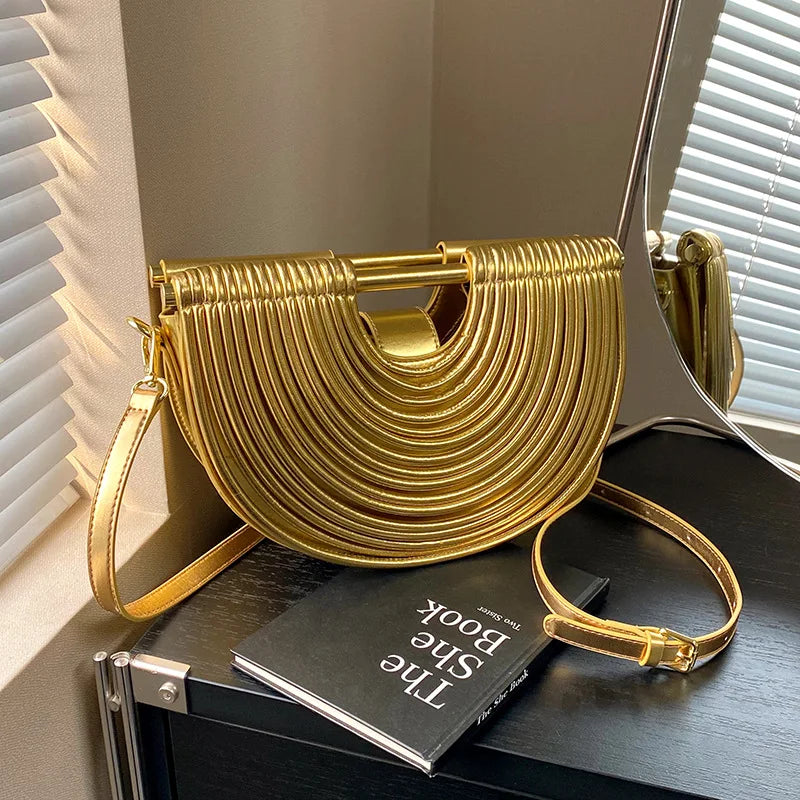 The VersaGlam designer clutch and messenger bag is the must-have accessory for the fashion-conscious woman. With its unique hand-woven rope design and trendy half-moon shape, this bag exudes pure elegance and modernity. Perfect for nights out, special occasions, or as a stylish addition to your everyday outfit. Thanks to its compact size, you can always carry all your essentials with you, both stylishly and practically.